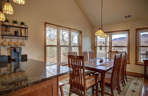 Escape to the tranquility of Mountain Paradise, a charming mountain-style home nestled amidst nature's splendor. Enjoy stunning long-range views of the valley, Tater Hill, and Snake Mountain from the expansive wrap-around deck. This spacious retreat comfortably accommodates up to six guests.