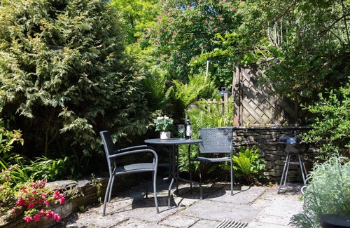 Climb the slate steps up to this delightful abode, which was cleverly created within a character-laden former barn. Enter to find welcoming, split-level accommodation, with wooden floors, exposed timbers and revealed stonework. The kitchen/diner is on the main level of the open-plan living area. Here, glass has been fitted into an original archway to bring the garden views right inside as you dine together. There is also a door that can be opened on warm days to bring in a summer breeze and give access to your private, courtyard area. The kitchen has been fitted out with everything you need to help you rustle up romantic meals for two, and there is a farmhouse table to dine at. There is also a bookshelf with a selection of good reads to choose from. Steps from the kitchen/diner lead down into the lounge, where comfortable seating has been arranged around an attractive, rounded chimney breast that houses the wood burner. Light a fire, sink back into the sofa and find your favourite programme on the TV. There is also a shower room, with WC. Climb the steps up from the kitchen/diner to discover your inviting double bedroom up on the mezzanine level. This has a vaulted ceiling and lovely views of the gardens and surrounding countryside.