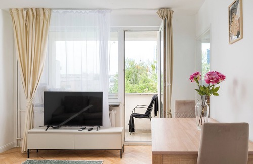 Złota Warsaw Skyline Apartment offers a spacious living room with a sofa bed, two separate bedrooms - one with a comfortable single bed, the other with a double bed - as well as a fully equipped kitchen, an elegant bathroom and a balcony. It is the perfect place to start your day with a cup of aromatic coffee or end it with a glass of wine, enjoying the view of the vibrant center of Warsaw.