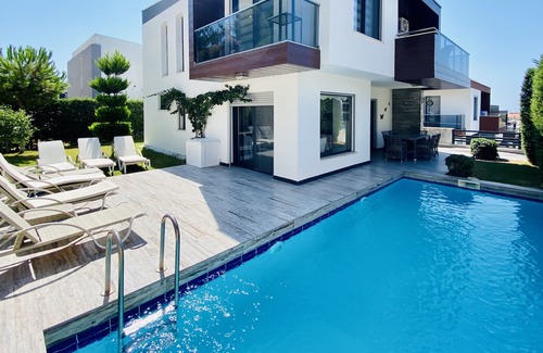 "Bahçeli, özel havuzlu muhteşem bir villada tatilin keyfini çıkartın! Büyük bir salon, 4 yatak odası, 2 banyosu 3 wc si olan muhteşem bir villadır. Giriş katında büyük bir teras, salon, mutfak, banyo&wc, misafir odası odası bulunmaktadır. Rahat oturma grubu, modern tasarlanmış odaları ve banyoları ile kalırken çok büyük bir keyif alacağınız bir villa sunuyoruz. 1 gün ara ile havuz temizliği yapılmaktadır.Denize 400-500 metre yürüme mesafesindedir."