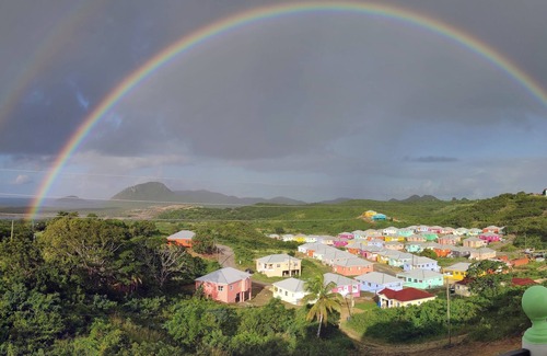 The property is located on top of a hill with amazing views of the highest mountain on island view of the harbor and Bayview the property is 3 floors this listing is on the middle floor, the property is 10-12 minutes drive to town and beach